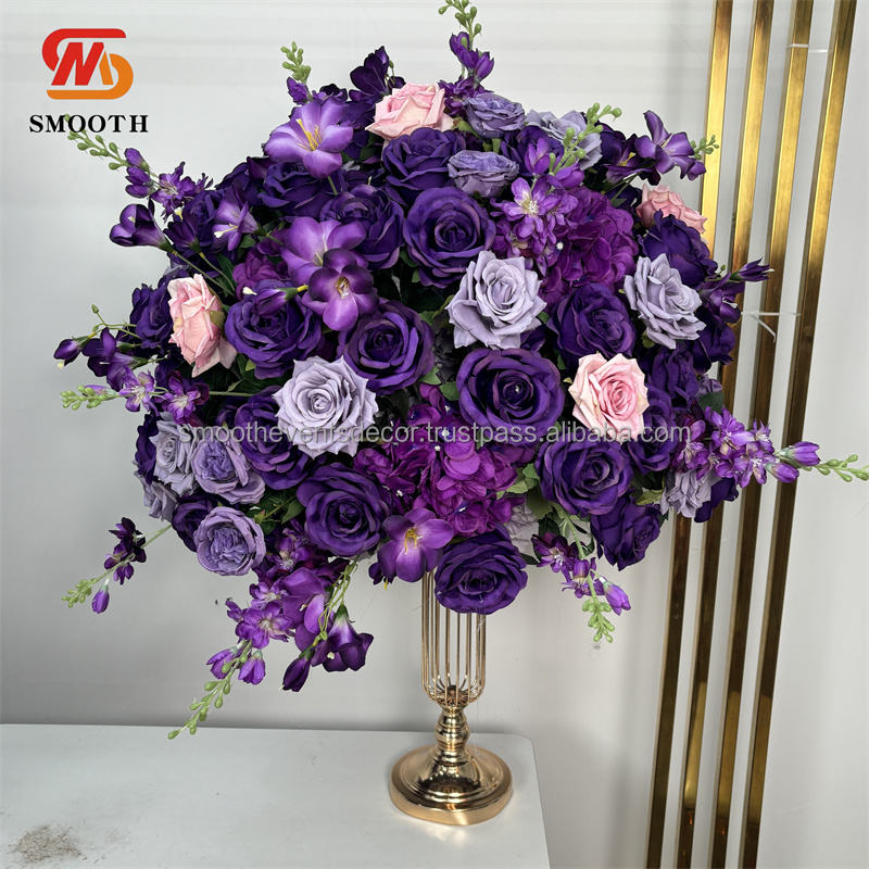 Boule de fleur violette au toucher réel de nouveau Design lisse pièce maîtresse boule de fleur de Rose en soie artificielle pour les événements