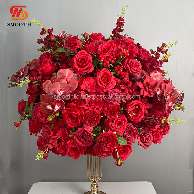 Bouquet de fleurs artificielles rouge pour décoration de mariage, nouveau design, centre de table pour mariage