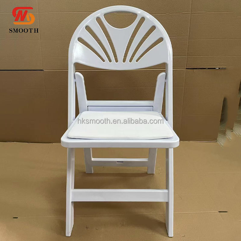 Chaise pliable en résine plastique blanche avec coussin en PU pour événements extérieurs et décorations de mariage