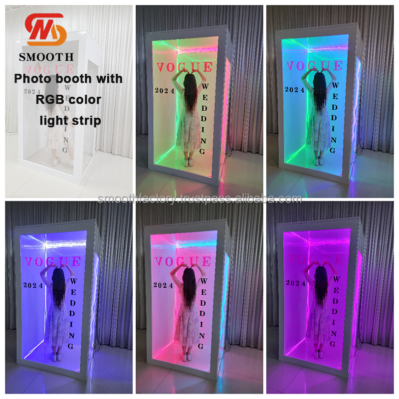 Accessoires de fête lisses boîte à photo unique toile de fond décor de mariage cabine photo vogue avec bande lumineuse LED