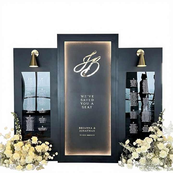 Panneau de bienvenue en acrylique lisse et populaire, fond noir, moderne, durable, luxueux, décoration de mariage