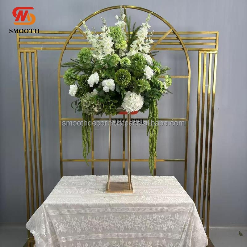 Arche de mariage dorée lisse et brillante, support de fleurs, écran de scène en acier, cérémonie, fête, décoration de la maison, accessoires en métal plaqué or