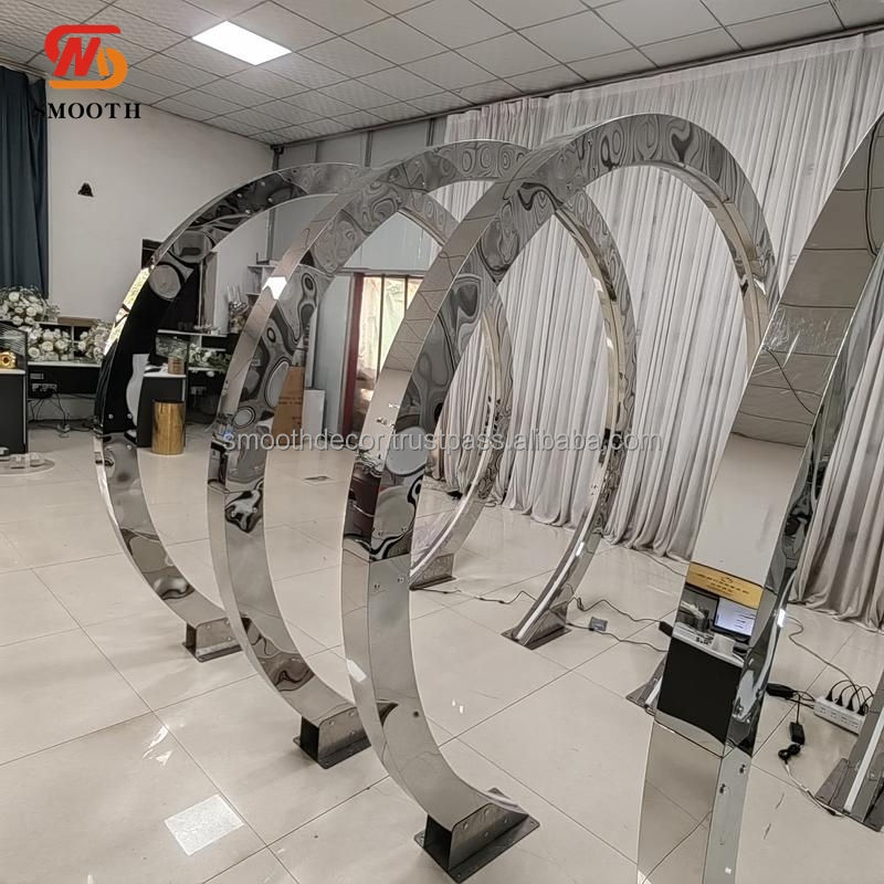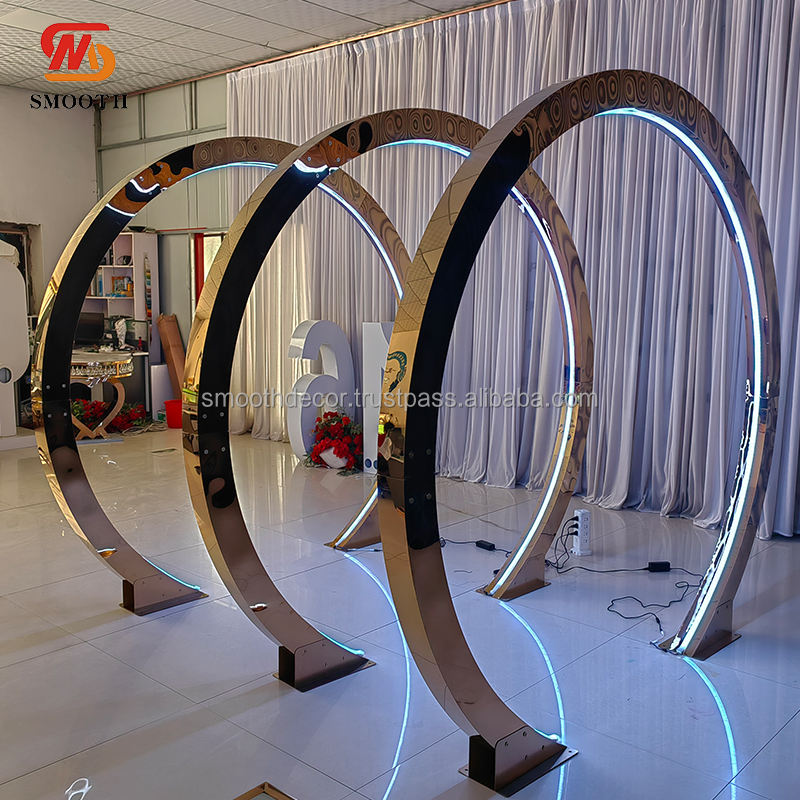 LISSE acier inoxydable brillant miroir or toile de fond Led entrée allées Tunnel cadre métal anneau métal mariage toile de fond