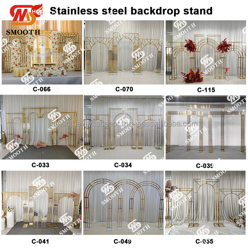 Arche de mariage en acier inoxydable lisse, arche de mariage et fleurs, arche de scène de mariage, décoration de fête