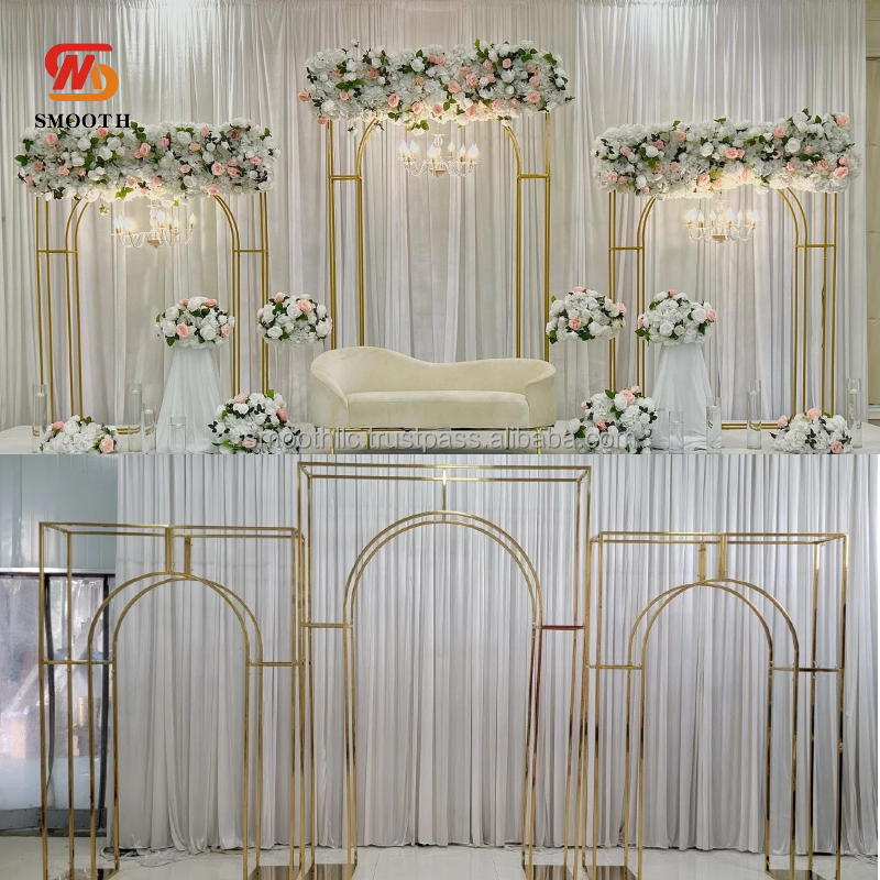 Arche en métal doré lisse pour décoration de mariage, cadre de fond pour fête d'anniversaire et de mariage