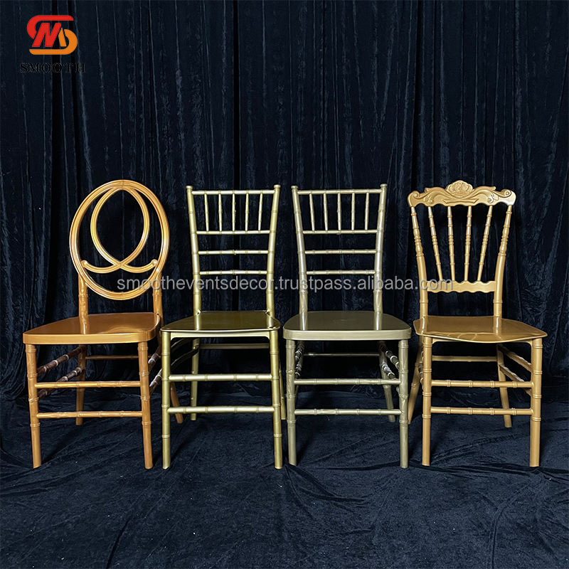Chaises empilables en résine plastique dorée pour décoration de mariage, détachables, pour salle de banquet, chaises d'extérieur