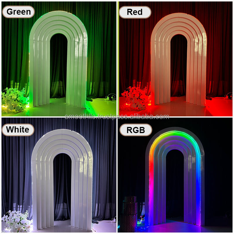 Support de fond blanc en métal lisse pour événements de mariage, 5 niveaux, forme de portail, pour décoration de baby shower avec éclairage