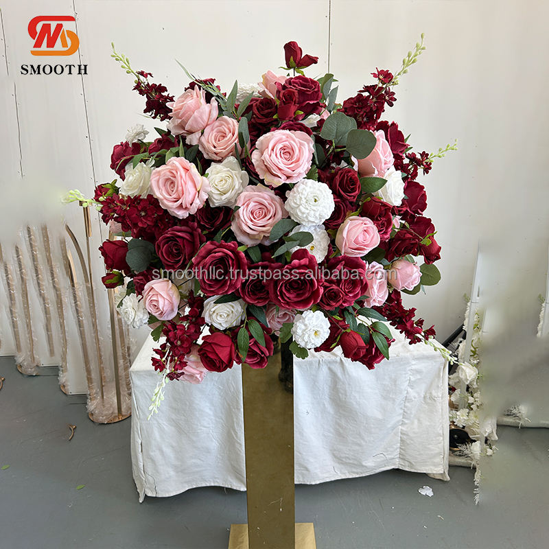 Décoration de mariage, événements, traiteur, boule de fleurs rouge, centre de table floral