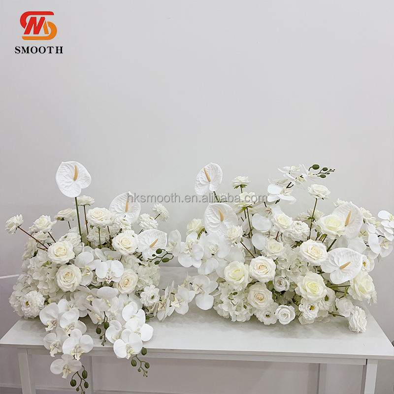 SMOOTH Wedding Events Party Decoration Artificial White Orchid Floral Bouquet Aisle Flower Runner For Floor