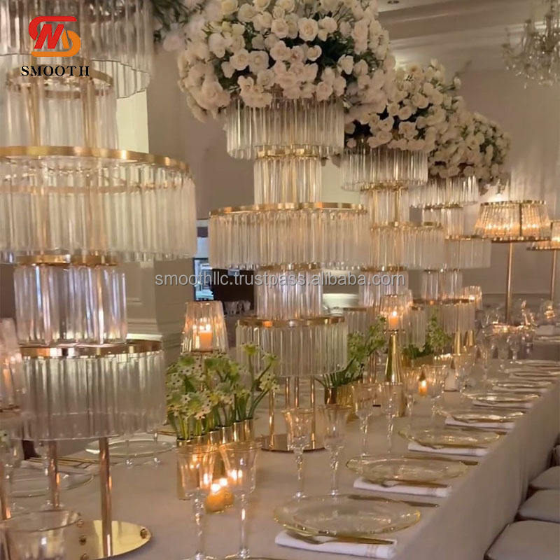 Support à fleurs rond en métal doré à plusieurs niveaux pour centre de table de mariage
