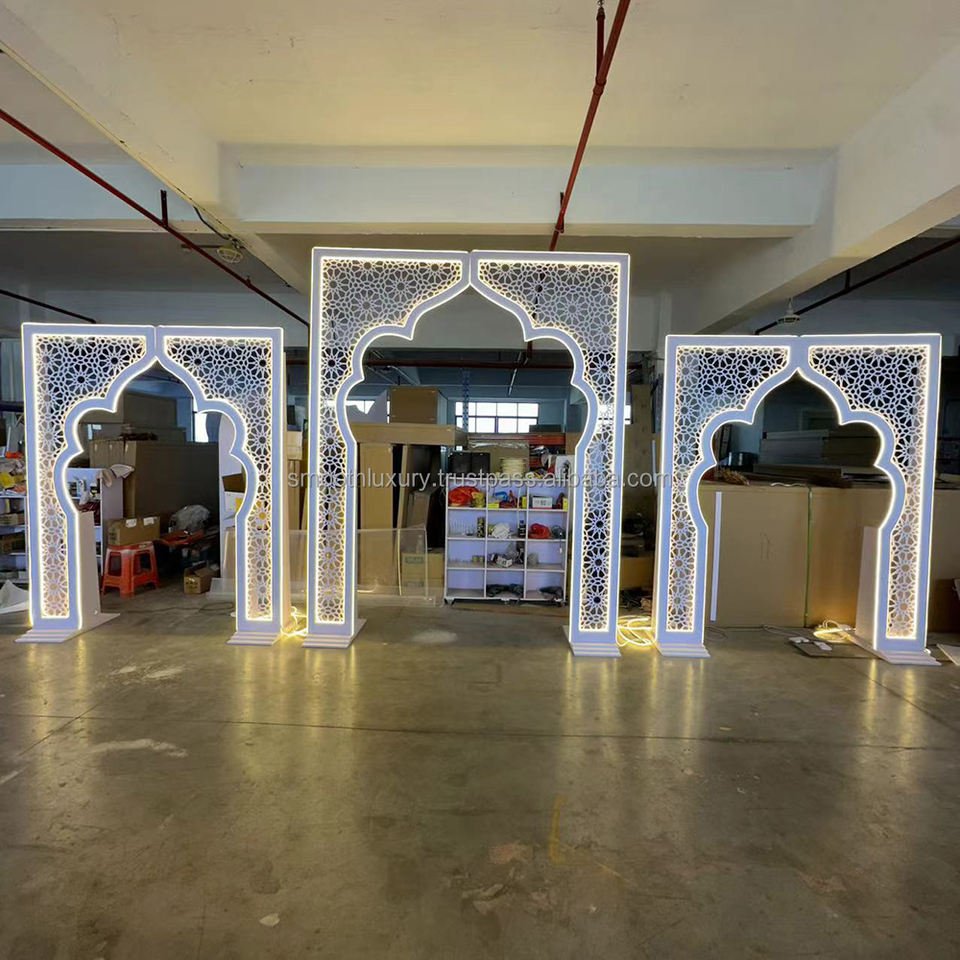 SMOOTH White Carved and Hollowed-out LED Light Acrylic Backdrop Decoration Arch Stand Wedding Lighting Event Backdrop