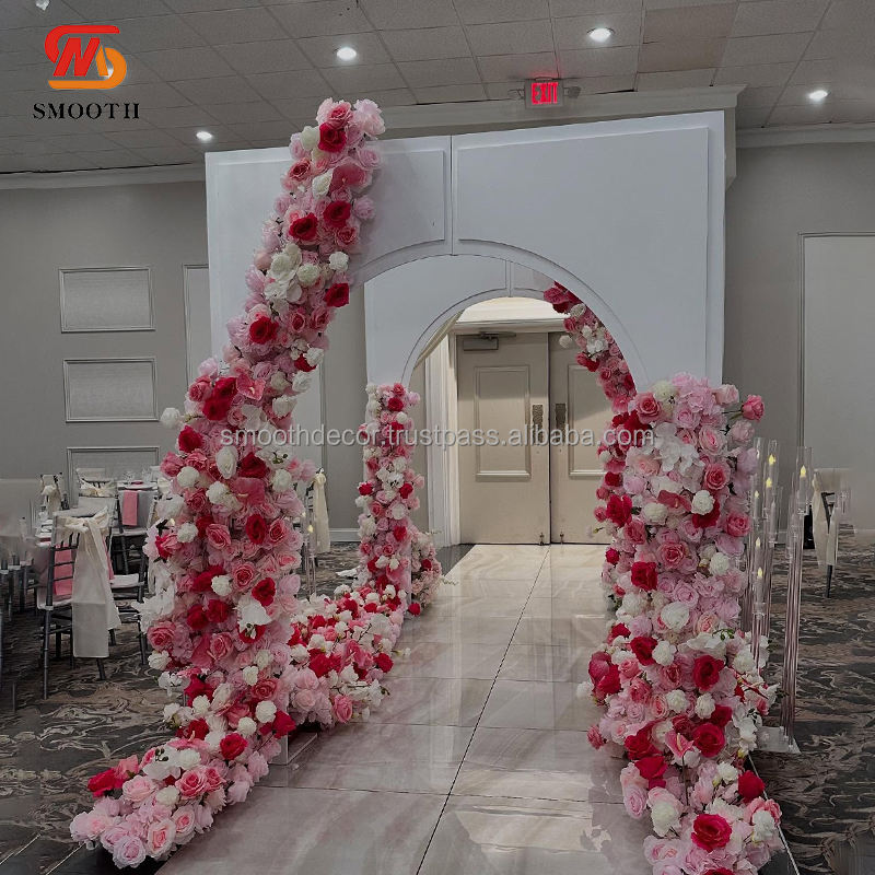 SMOOTH White Led Light Square stage stand PVC Arch carved wedding backdrop with Flowers