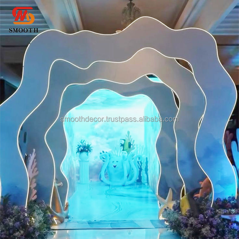 Toile de fond de mariage 3D en PVC acrylique en forme de vague blanche lisse mur de toile de fond d'arche de mariage avec lumière LED