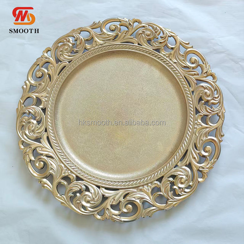 Assiette de présentation ronde en plastique doré, motif floral en forme de rose, 13 pouces, vente en gros SMOOTH