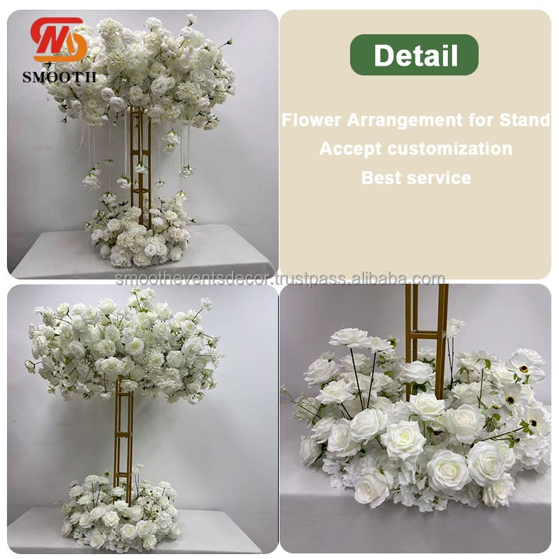 SMOOTH Wholesale Elegant Wedding Artificial Ferris Wheel Silk White Flower Centerpiece With Base Wreath for Wedding