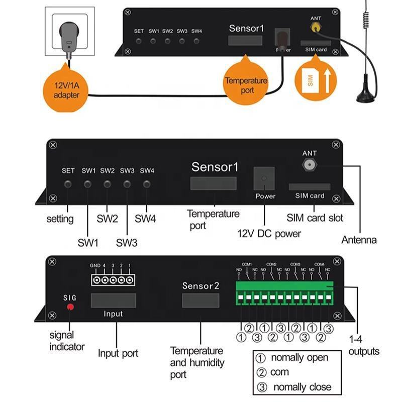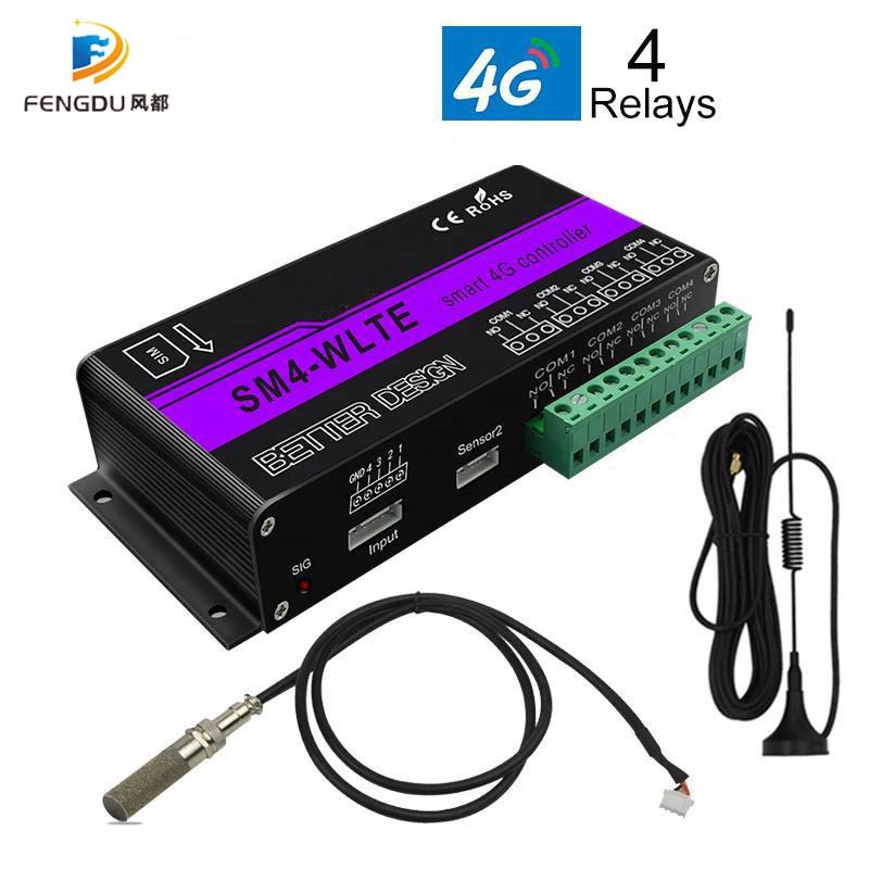 Télécommande SMS GSM 4G LTE APP Web relais à 4 canaux interrupteur marche/arrêt capteur de température et d'humidité SM4 en option