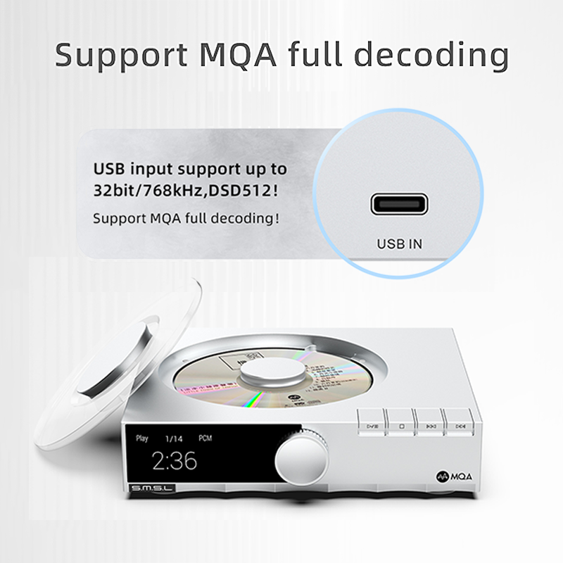 SMSL PL200T lecteur CD haute résolution MQA-CD entrée d'horloge DSD512 système Servo P.A.S.S prise en charge de l'entrée USB sortie coaxiale optique I2S AES/EBU