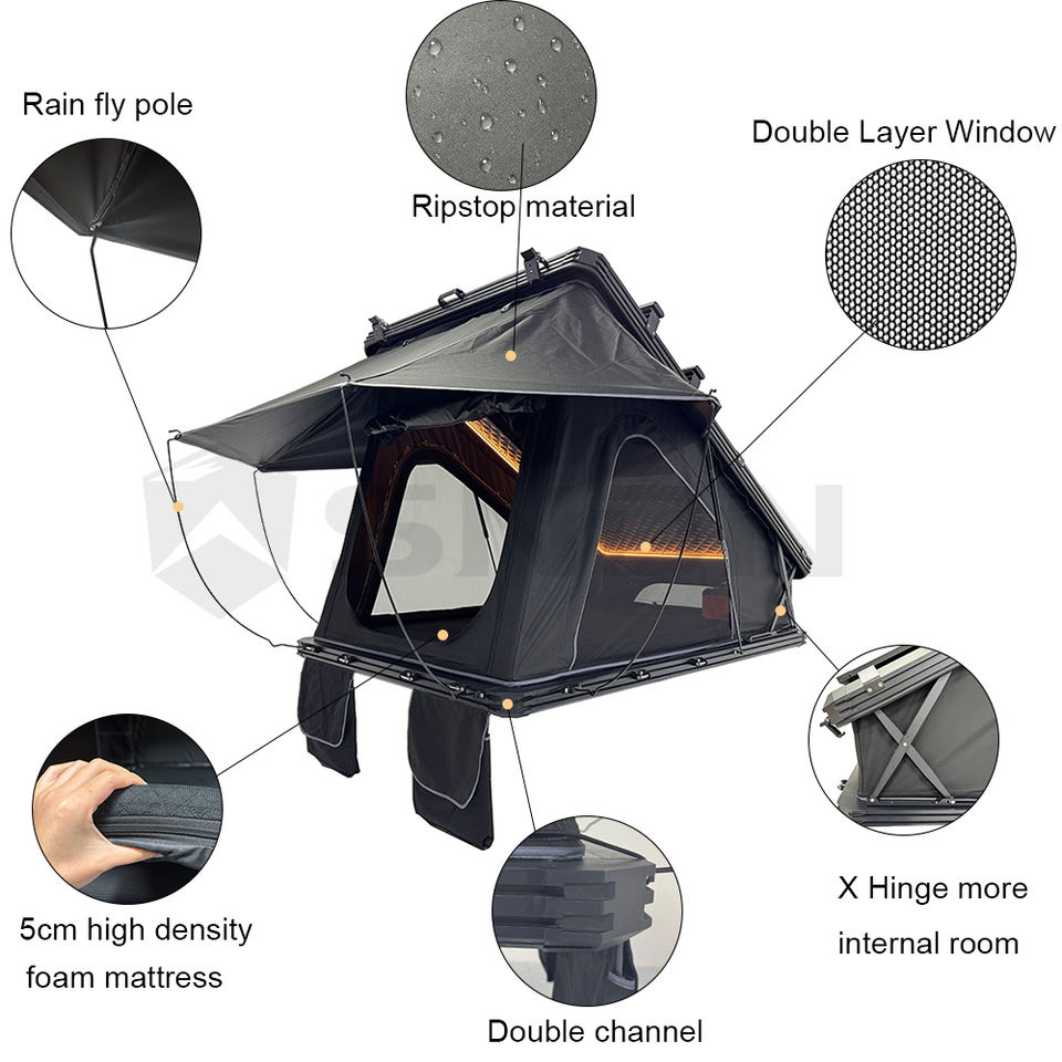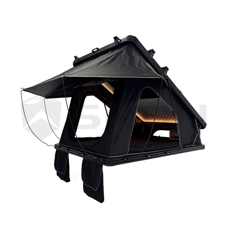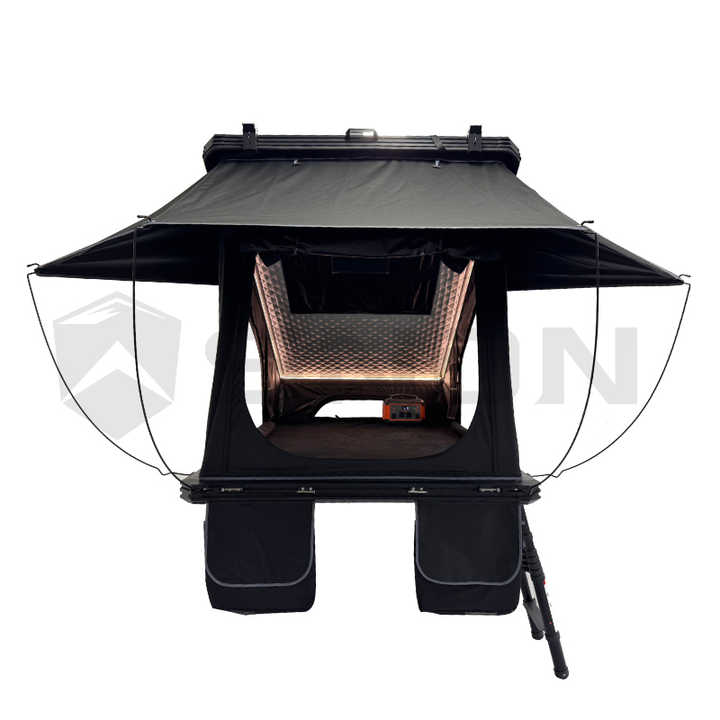 Tente de toit rigide SNDN 4x4 avec charnière en X et panneau solaire, tente de toit automatique légère en aluminium pour SUV