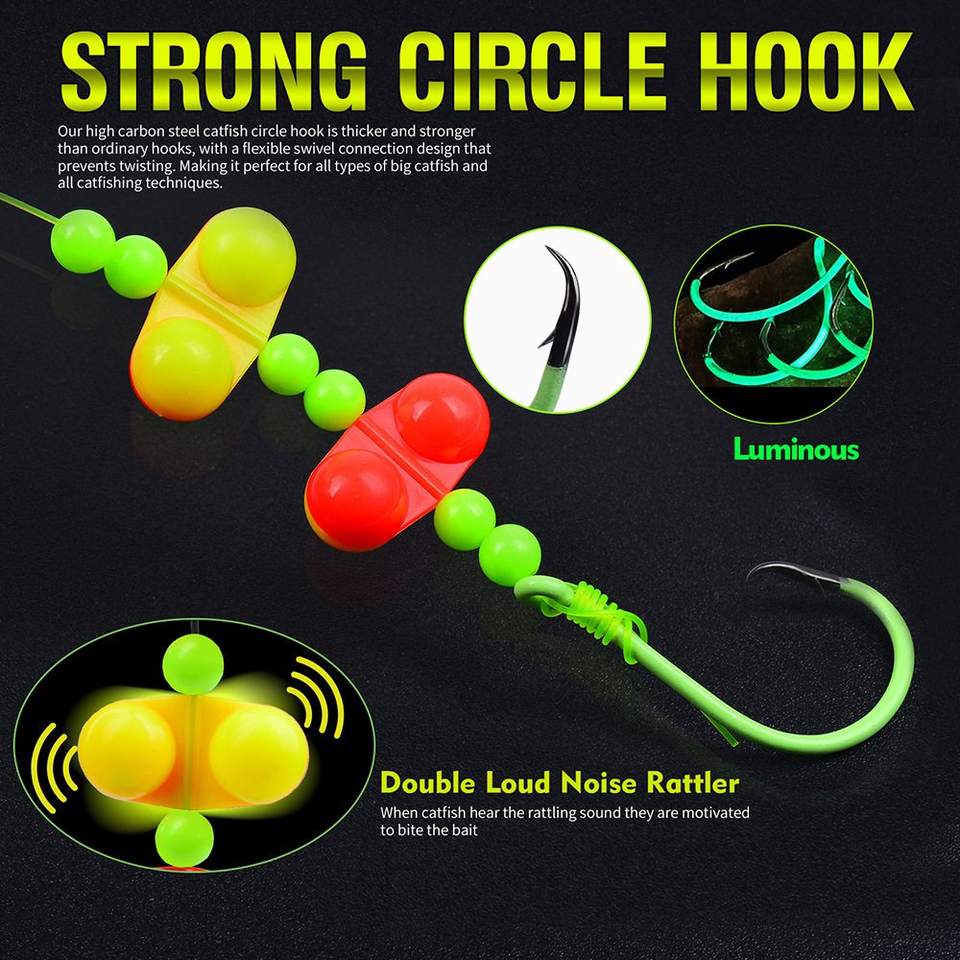 SNEDA Rig de pêche à la traîne longue portée de style européen, configuration pré-assemblée pour la pêche au poisson-chat avec flotteur sonore et hameçons circulaires pour le lac