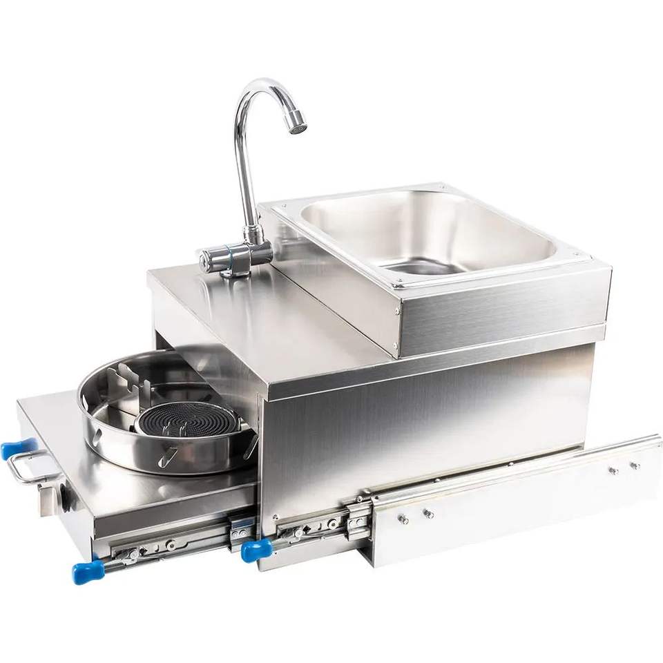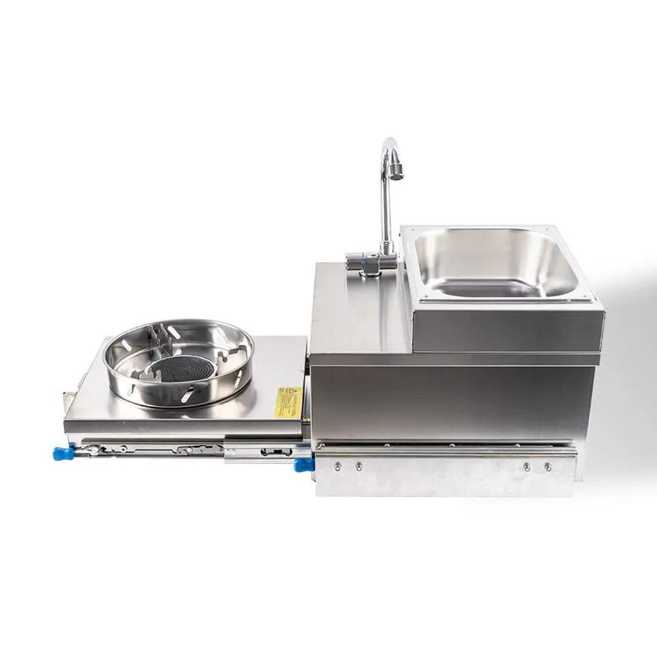 Cuisine coulissante en acier SNEIDA pour cuisine coulissante en acier avec cuisinière à gaz camping-car cuisinière coulissante