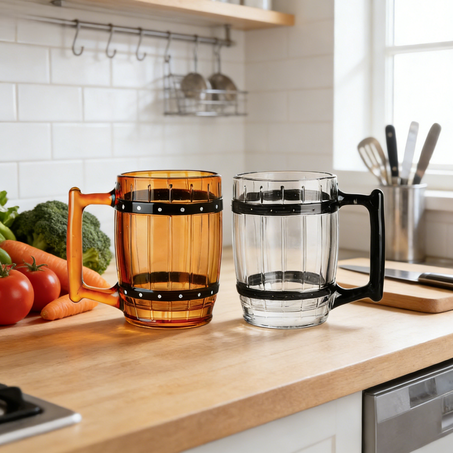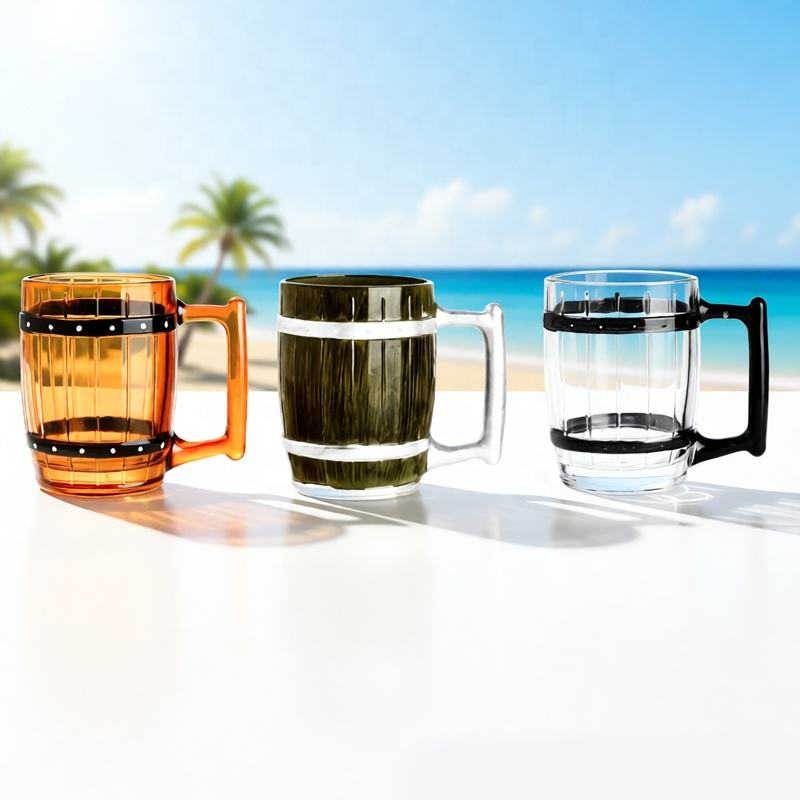 SNW Handpainted Colored Wooden Barrel Shape Pirate Style ONE PIECE Leadfree Crystal Glass Beer Mug Milk Beverage Glass Cup