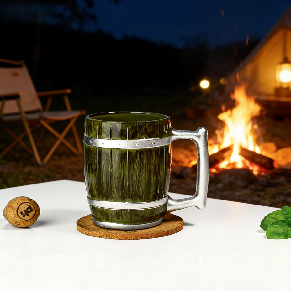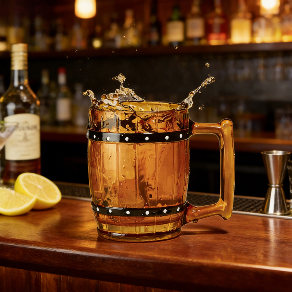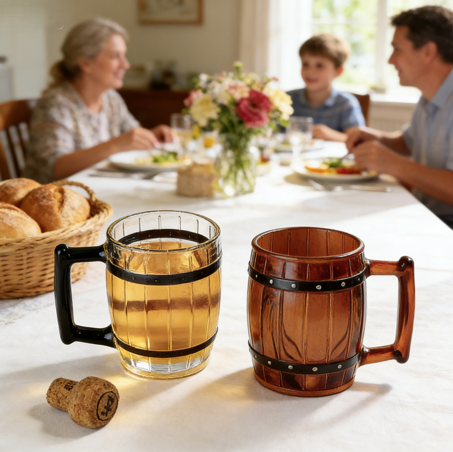 SNW Creative Pirate Style Wooden Barrel Shape Glass Mug