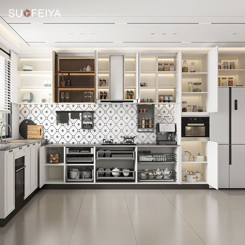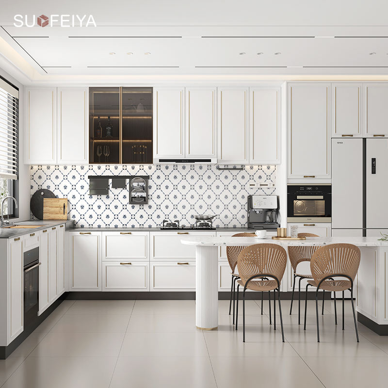 SOFEYIA Armoires de cuisine en bois PVC personnalisables Armoires de base d'évier auto-assemblées Fabricants de menuiserie MDF pour les villas de Dubaï