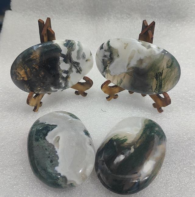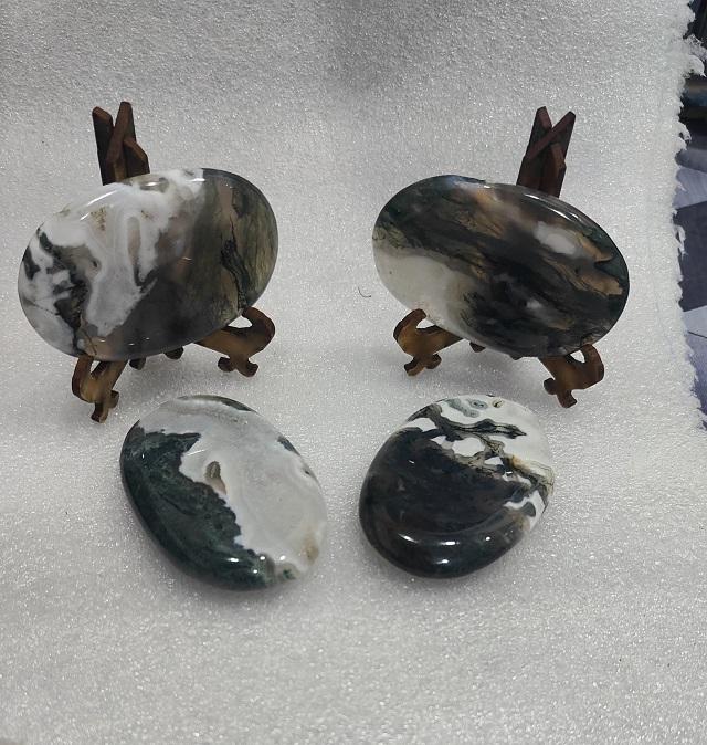Merveilleuse qualité de mousse naturelle Agate plat palmiers pierres cristaux mousse Agate guérison cristal palmier pierre à vendre Soha Agate