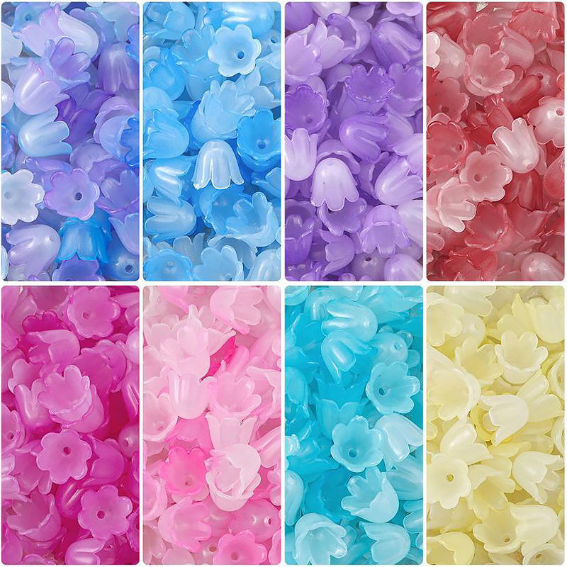 SOJI Transparent givré dégradé couleur 8*10mm petite trompette fleur perles acryliques charme en vrac bricolage cheveux en plastique Lucite perles