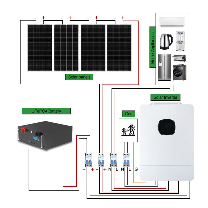 Système solaire hybride avec batterie, options de puissance de charge 6KW/10KW/15KW