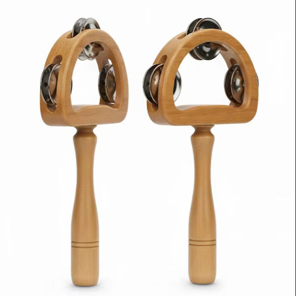 SOLOBEAT Ergonomic Wooden Handle Mini Tambourine Jingle Drum Musical Instrument Iron & ABS Material Portable Bag Drum Type