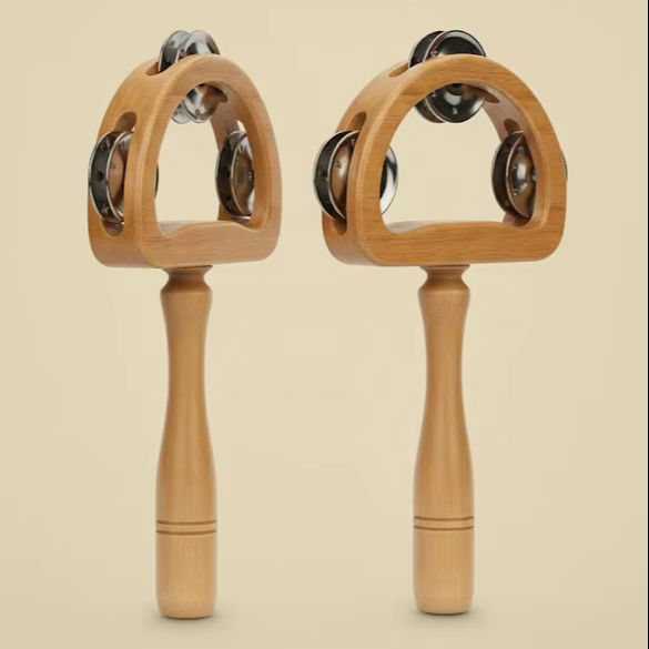SOLOBEAT OEM Wooden Tambourine Handheld Percussion Instrument with Metal Bells for Rhythm Training
