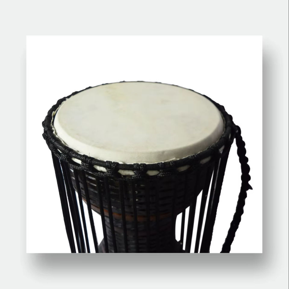 SOLOBEAT Professional 35cm Bronze Djembe Drum Hand Carved African Gong with Natural White Goat Skin Black Braided Rope 12kg