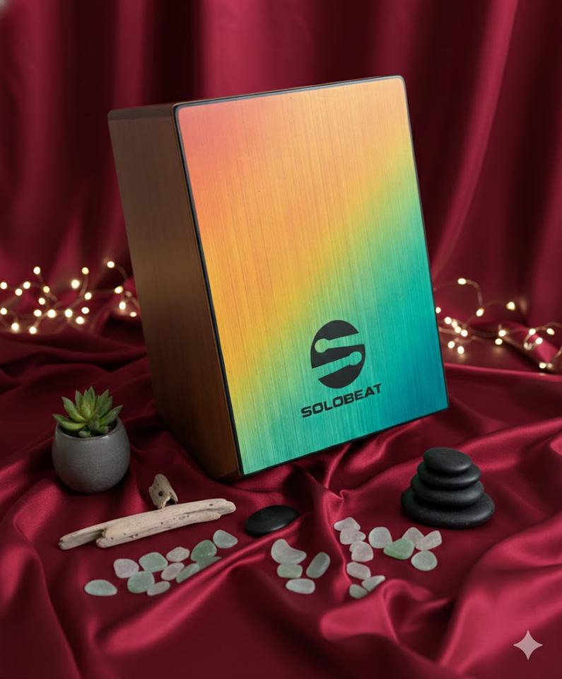 SOLOBEAT Professional Wooden Cajon Drum with Rainbow Front Plate Snare Drum Type for Musical Use