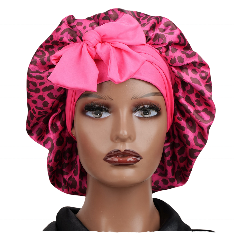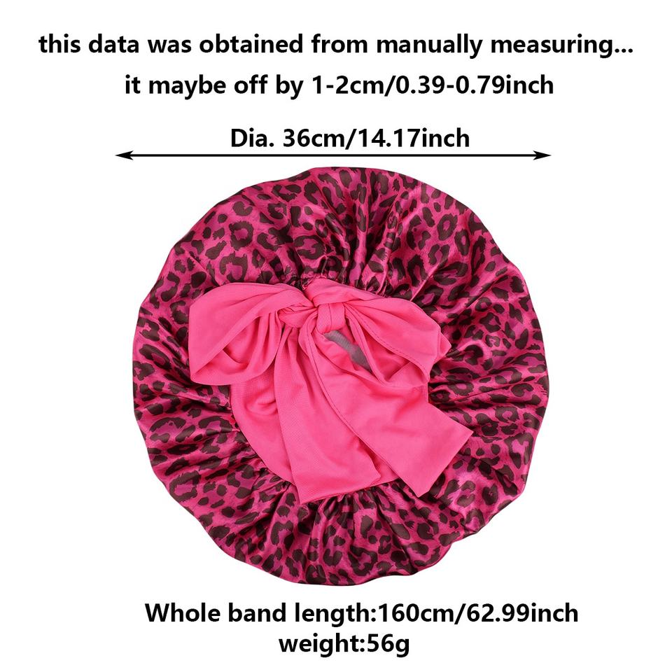 Bonnet de nuit en satin SOLPOP personnalisé à imprimé léopard, nœud papillon, ruban réglable, longue sangle, soin des cheveux pour femmes