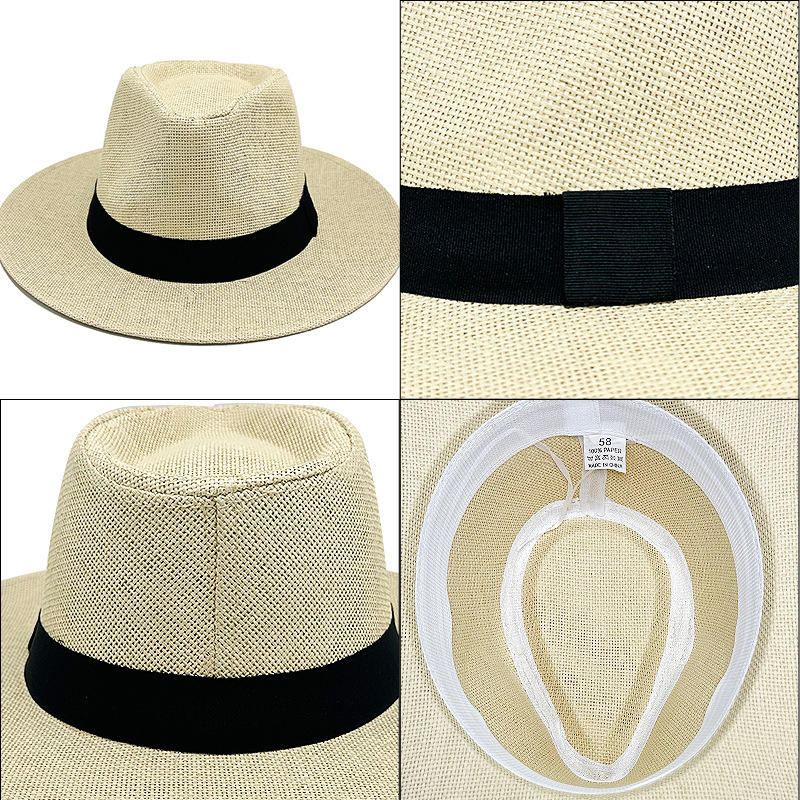 Chapeau Fedora en paille Panama à large bord SOLPOP pour homme, idéal pour l'été et la plage, avec option de ruban personnalisé, taille adulte 56-58CM