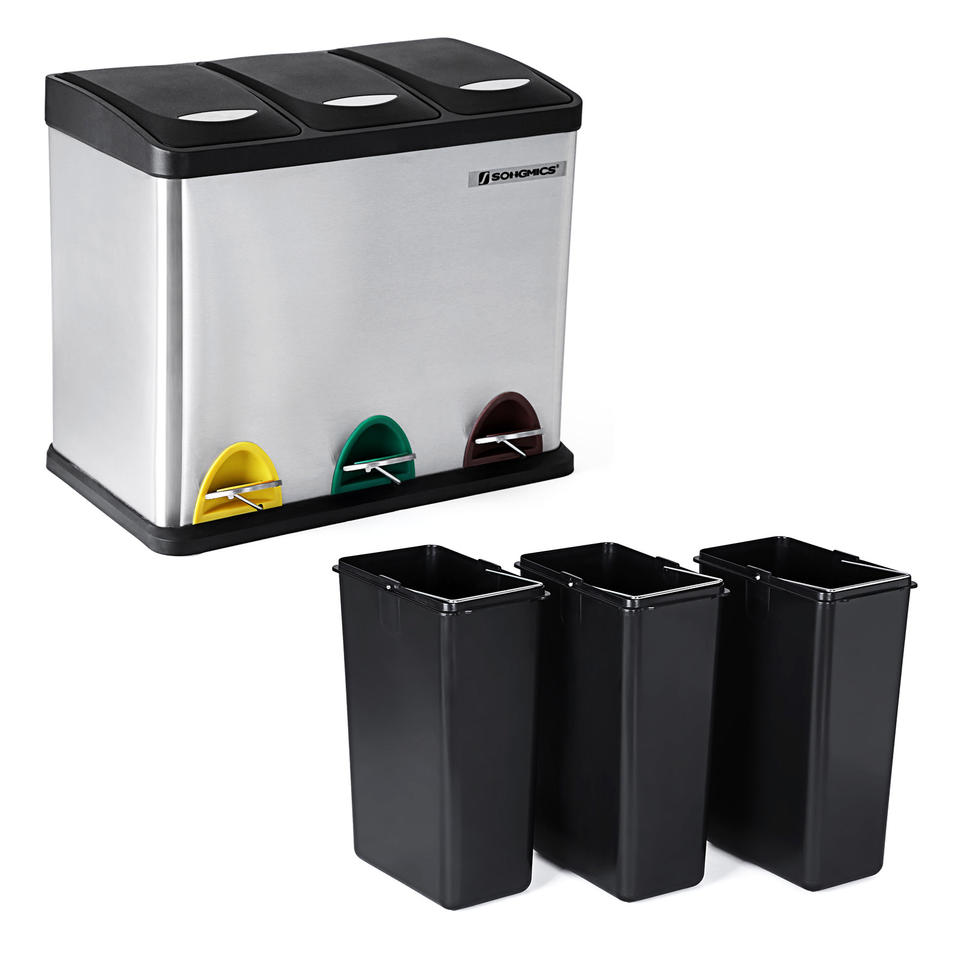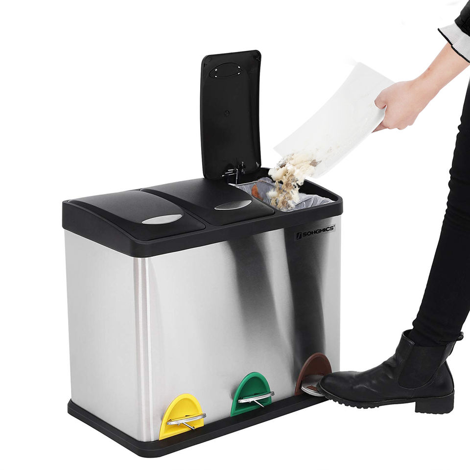SONGMICS Poubelle à pédale en acier inoxydable 24L pour salle de bain et cuisine, bac de tri des déchets