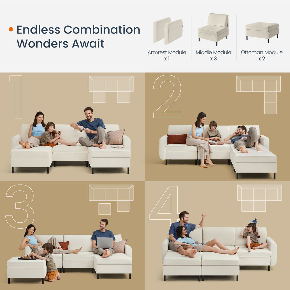SONGMICS HOME grand canapé moelleux ensemble meubles blanc canapé modulable canapé U forme salon canapé ensemble