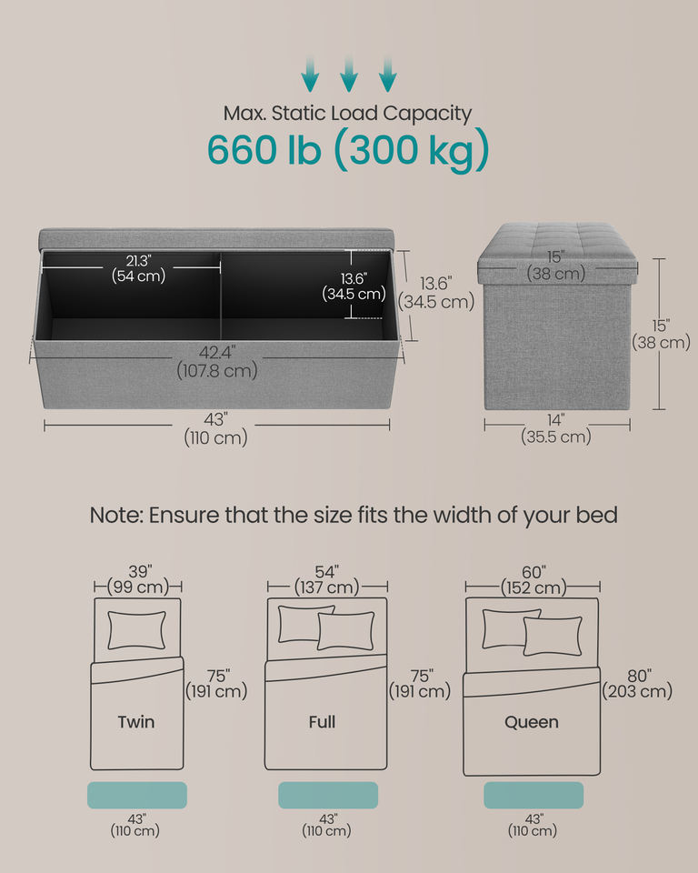 Nom du produit:SONGMICS Banc Ottoman Pliant de Rangement 43 Pouces