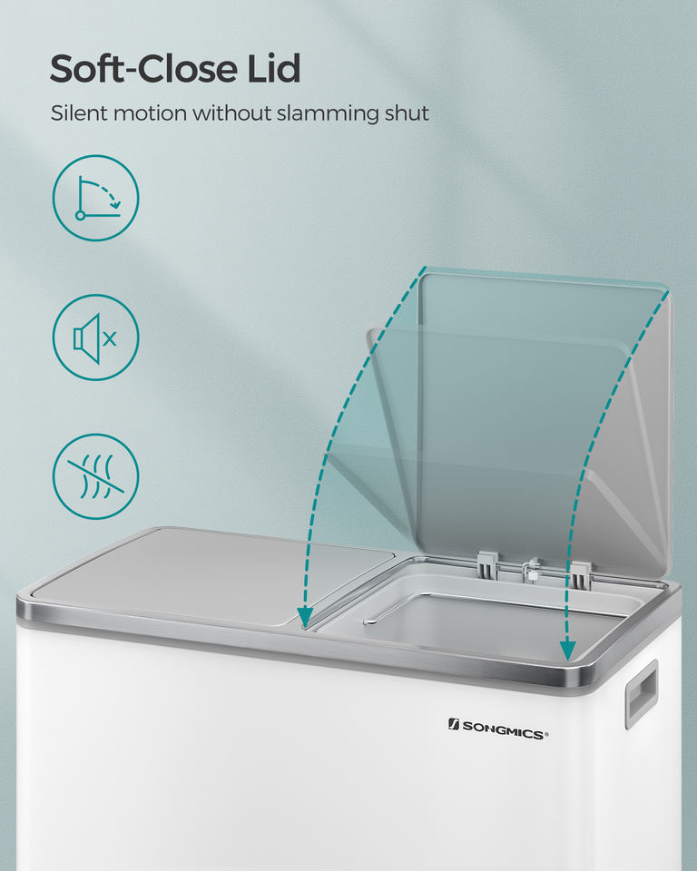 Eco-Friendly, Water Resistant, Pedal, removable inner bucket, Anti-Fingerprint, Double, Sturdy, Lids, Sortingfeature