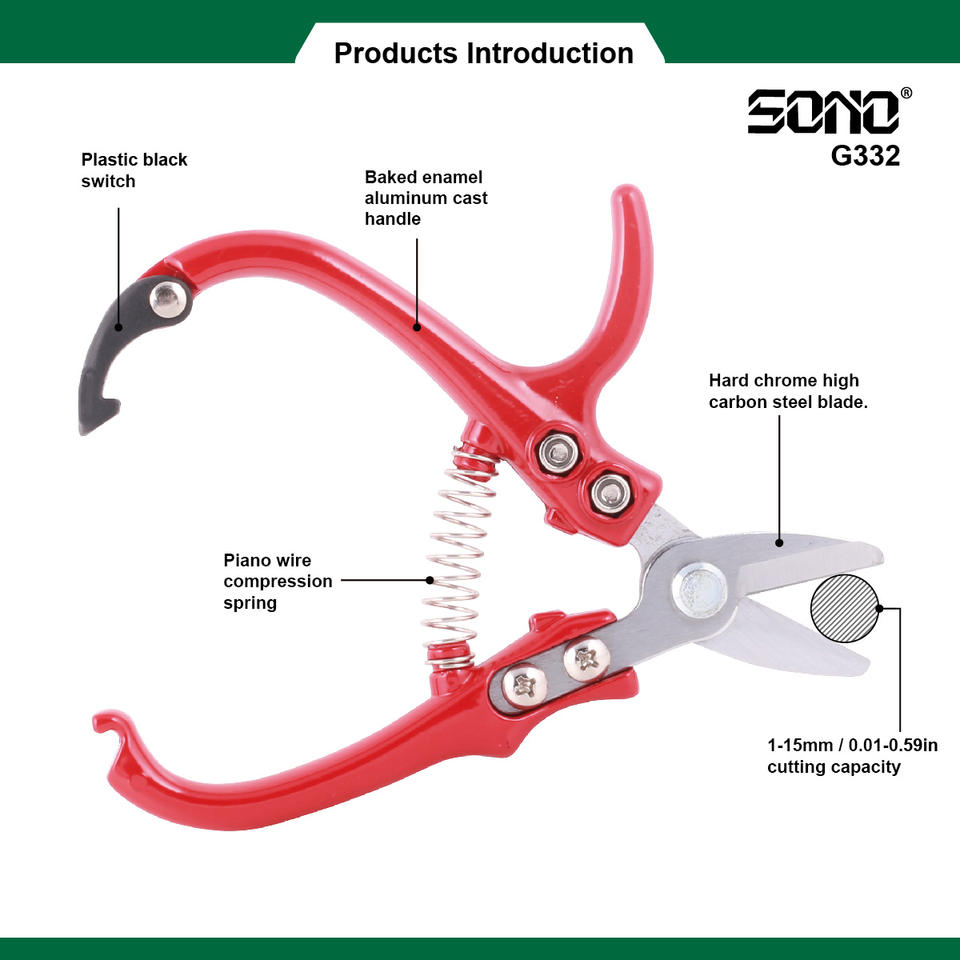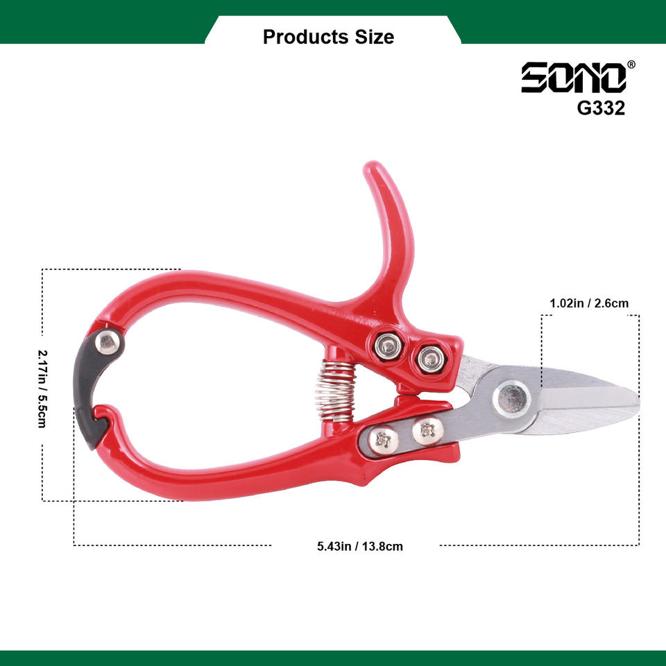 Sécateur de jardin SONO G332 industriel durable à lame en acier au carbone chromé dur, pour droitiers, pour bricolage et travaux floraux