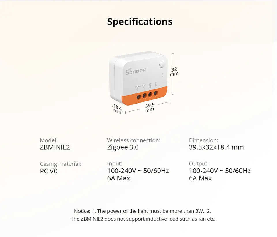 SONOFF ZBMINI-L2 Smart Switch No Neutral Wire Required Zigbee MINI 2 Way Wireless Smart Home Switch with EWeLink & Voice Control