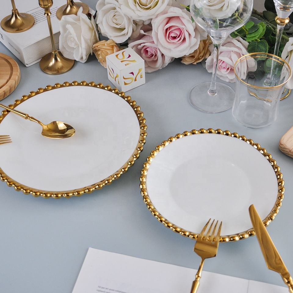 Assiettes de luxe SONYA en gros avec incrustations dorées, assiettes de présentation écologiques en pierre turquoise pour mariage