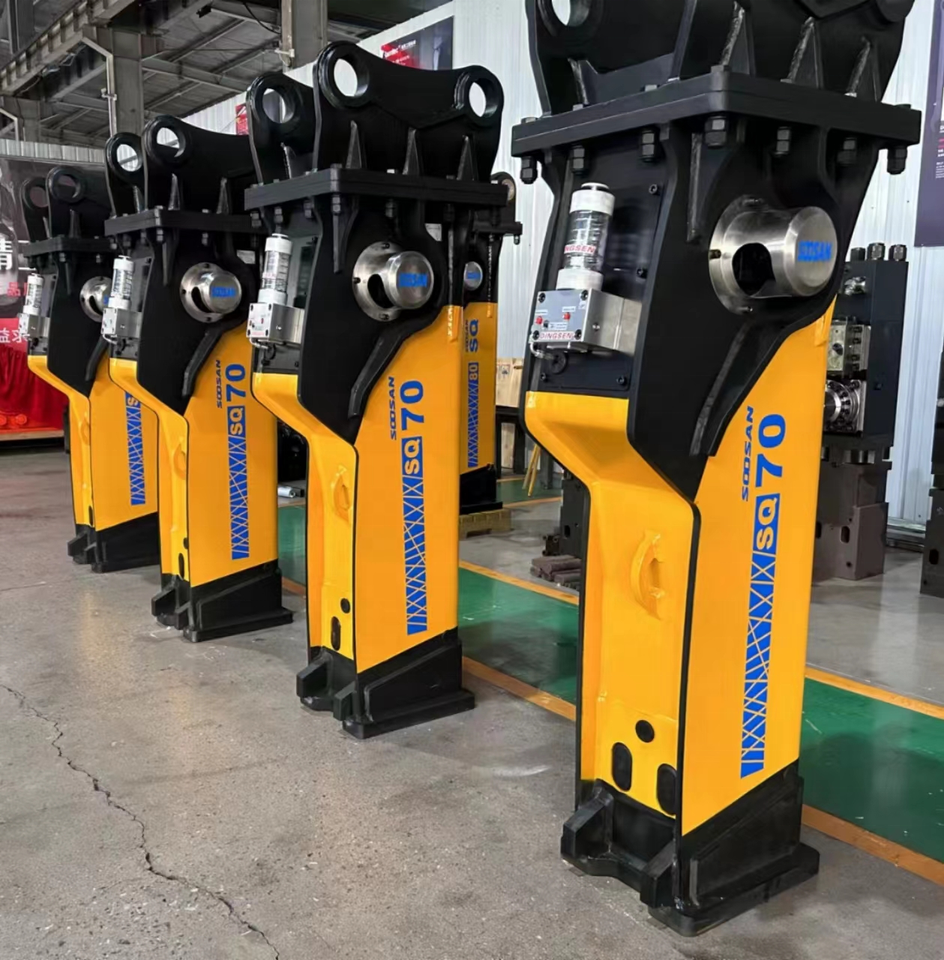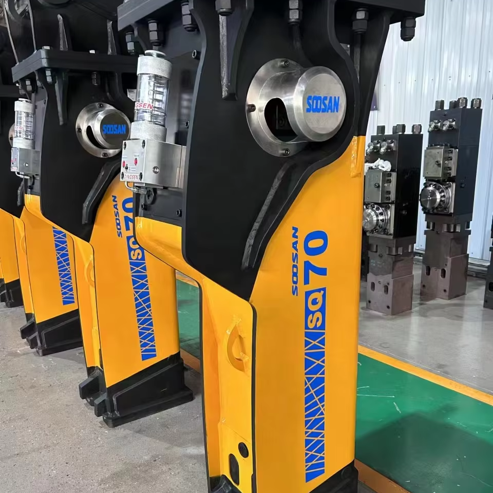 Casse-pierre hydraulique SOOSAN SQ 70 de type boîte avec système de graissage automatique et accumulateur, adapté aux excavatrices de 16 à 21 tonnes