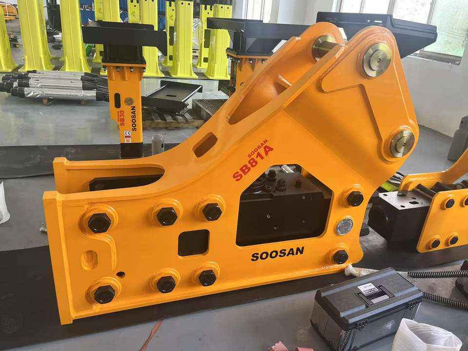 Disjoncteur hydraulique de type latéral SOOSAN SB81A pour accessoires d'excavatrice à grande échelle avec pièces de rechange, y compris ciseaux et tuyaux