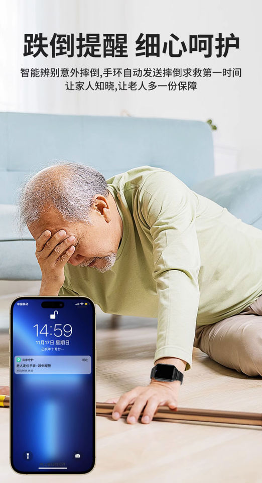 Montre connectée de santé avec fonction SOS, suivi de la fréquence cardiaque, détection de chute, alarme, rappel de médicaments pour personnes âgées