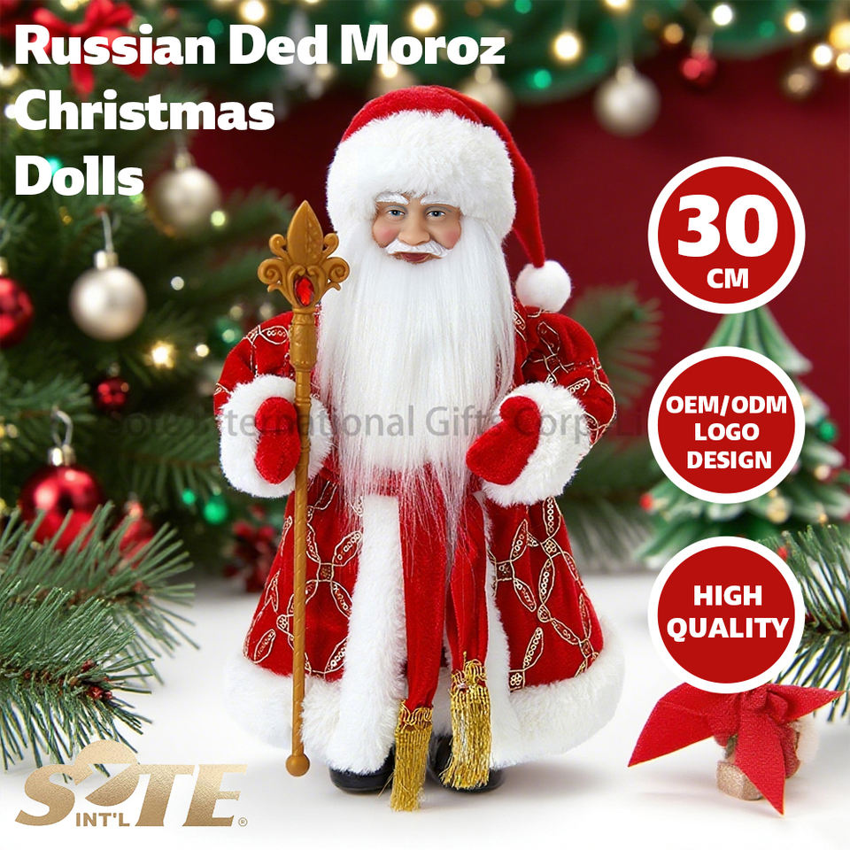 SOTE Offre Spéciale Russe Artisanat Robe Ded Moroz Animé Noël Rouge Debout Père Noël avec Sceptre Longue Robe En Peluche Ded Moroz