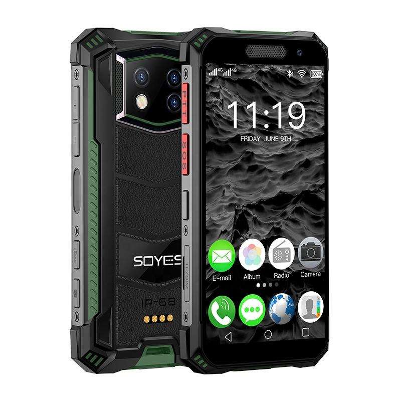 SOYES S10 Max 4G Mini Smartphone Robuste Global 4G LTE 4 Go + 128 Go IP68 Déverrouillage par Empreinte Digitale et Reconnaissance Faciale Téléphone Mobile PTT