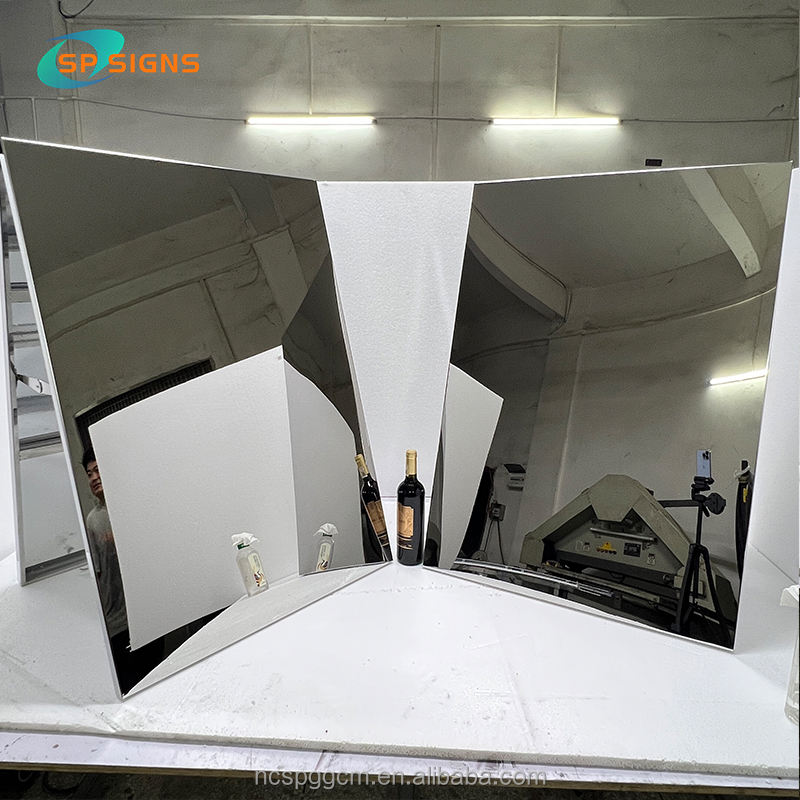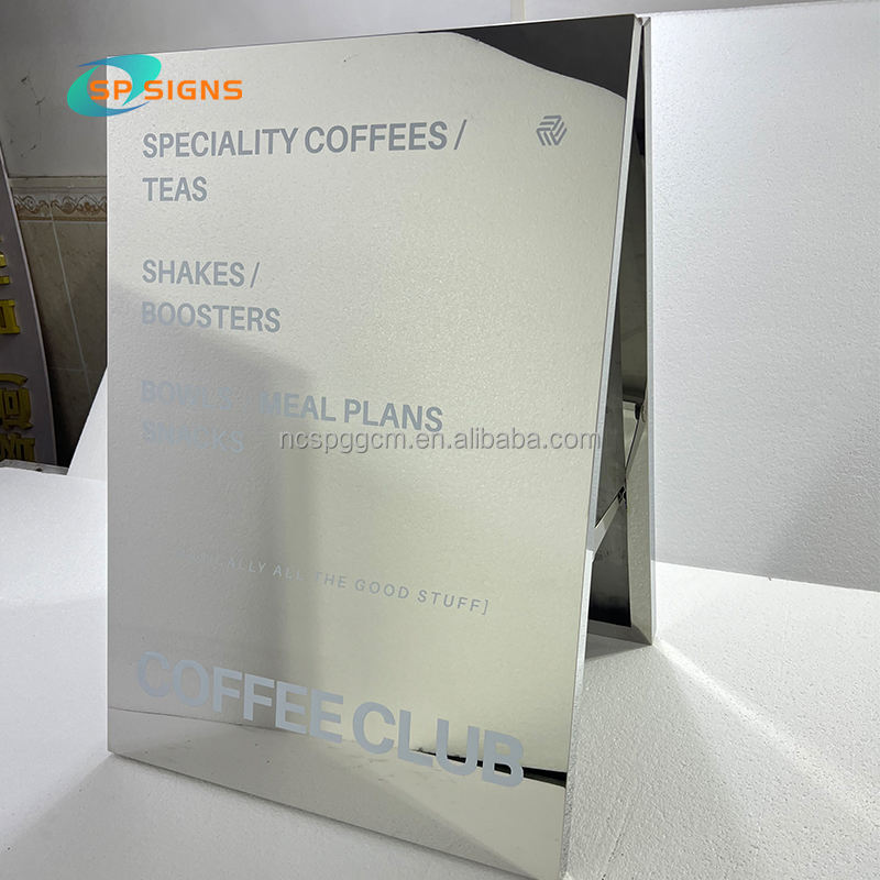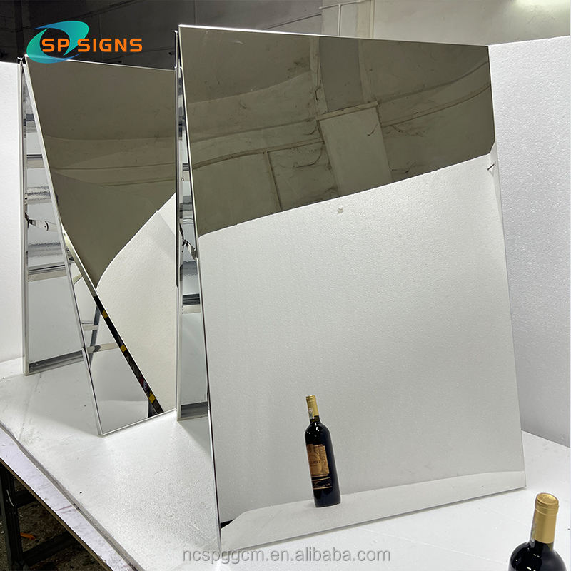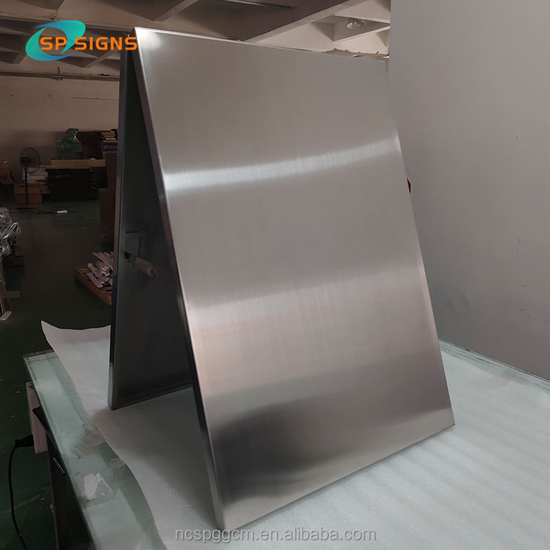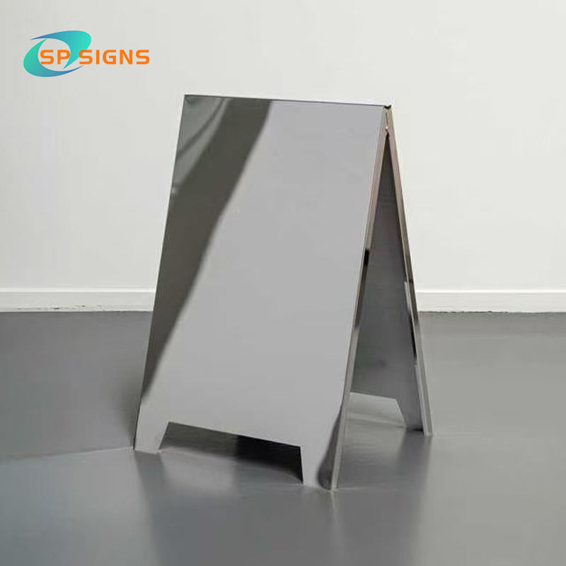 Panneau publicitaire double face en acier inoxydable miroir argenté or SP Custom 8k 12K, support en A, pour enseigne commerciale extérieure