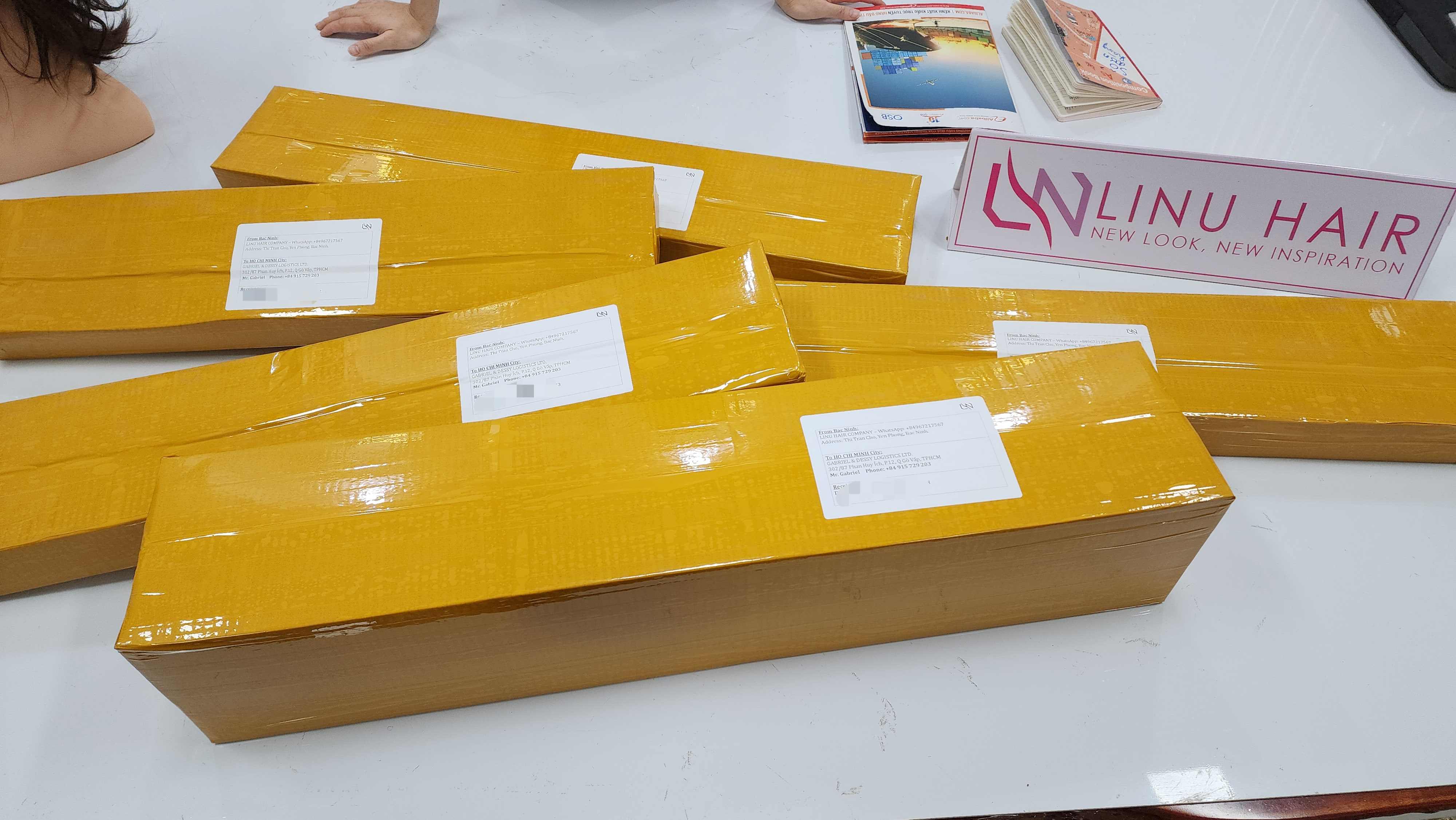 Tous les cheveux du client seront emballés dans le carton et colleront le ruban à l'extérieur pour éviter l'eau et éviter les erreurs